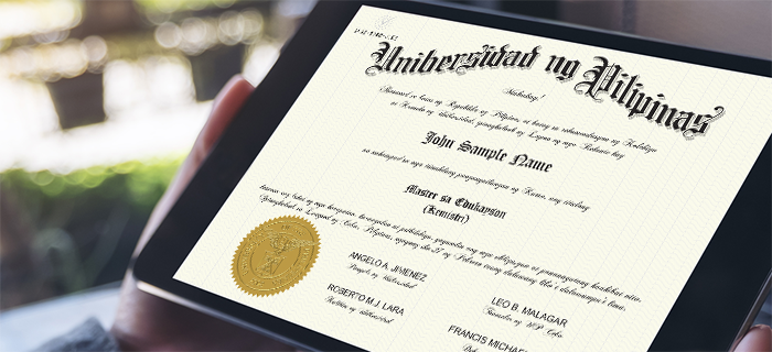 University of the Philippines now offers digital diplomas and certificates! These are electronic credentials known as a CeDiploma or CeCertificate (CeDiploma/CeCertificate)! Watch an Overview video to learn more!