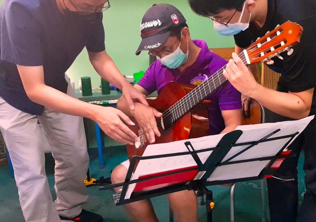 The comparison of the actual change of passive range of motion (ROM) of the impaired hand from pre- to post-treatment between control and intervention groups showed no statistically significant difference. No statistically significant difference between groups was also observed for the active ROM of the impaired hand. Comparison of the function of the impaired hand pre- and post-treatment between control and intervention groups showed no statistically significant difference, except for an observed greater improvement with the control group in motor coordination. This means that improvement in hand function using the guitar lesson was comparable to that from traditional occupational therapy. The findings point to the usefulness of the method in areas with limited access to rehabilitation facilities and occupational therapy services, and as a continuing activity for chronic stroke patients at home to help improve hand function.