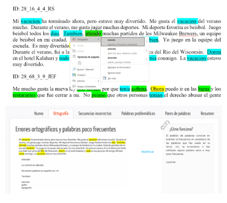 As a result, this specifically-crafted correcting tool is not only capable of identifying more Spanish L2 learners’ errors than MW but it also provides brief, error-specific feedback, explaining relevant spelling rules and giving examples which follow the same pattern. Consequently, Spanish FL learners would potentially use this tool to confidently self-correct their writing and learn from their errors, saving time and effort on the teacher’s part.