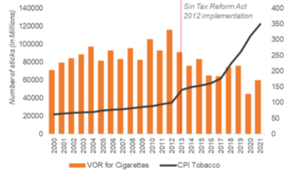 This study looks into how recent tax reforms on cigarettes and fermented liquor in the Philippines have affected people’s consumption habits. The government has raised taxes on these products over the past few years to reduce smoking and related health issues, as well as to generate funds for national health programs. The study proposes a new way to analyze this impact using readily available national data, as getting data from individual surveys in developing countries like the Philippines can be difficult. By analyzing data from 2000 to 2021, the study finds that the demand for cigarettes responds to price changes similarly to previous studies, while also providing new insights into fermented liquor consumption. This suggests that tax policies can indeed influence people’s health behaviors.