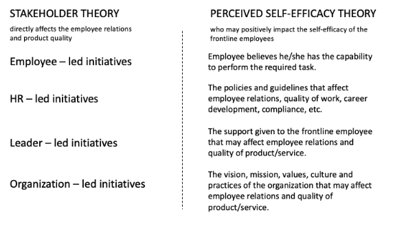 This study draws on the stakeholder theory and self-efficacy theory as the theoretical foundation for classifying OCB antecedents. The stakeholder theory emphasizes the influence of various stakeholders, including employees, leaders, the organization, and HR departments, on reaching organizational goals. In contrast, the self-efficacy theory explores the individuals’ belief in their capability to perform specific behaviors. By using the stakeholder and self-efficacy theories, the proposed four clearly defined categories point out whether these antecedents are employee-led, leader-led, organization-led, or HR-led initiatives.