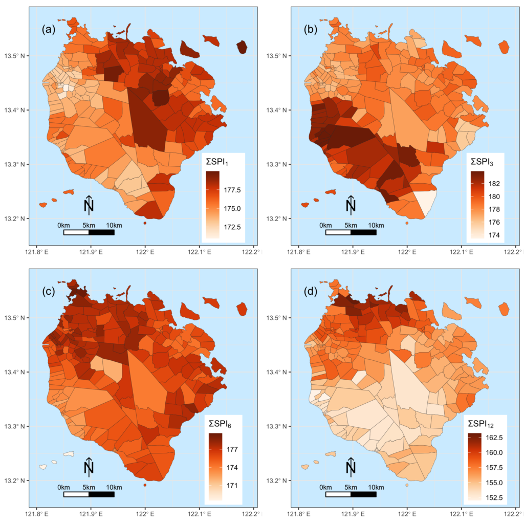 Islands are highly vulnerable to natural disasters and extreme weather events due to their physical size, remoteness, and limited resources. This paper measured village-level drought risk in Marinduque, Philippines using Principal Component Analysis (PCA) and fuzzy logic. Standard Precipitation Index was used to measure drought hazards in the province utilizing publicly available rainfall. Principal component analysis was used to derive the drought hazard index from SPI-calculated drought magnitude and total drought event at different time scales. The fuzzy logic approach was used to delineate the physical vulnerability of the province to drought. The social vulnerability index was also derived from the socioeconomic and demographic data of Marinduque using PCA. Based on the results, villages with high drought risk were found in the northwest and eastern portion of the province. The results showed that topography and climate influence the hazard and physical vulnerability to drought in the area. Villages in high mountainous regions, and areas with low rainfall have higher drought hazard and physical vulnerability scores. Meanwhile, villages with high social vulnerability are also those with a large population of women, the elderly, and households engage in agriculture. Results from this study can be used to develop plans and policies to mitigate and reduce the potential impact of future drought events in the province. The approach used in this study can be replicated in other areas of the country.