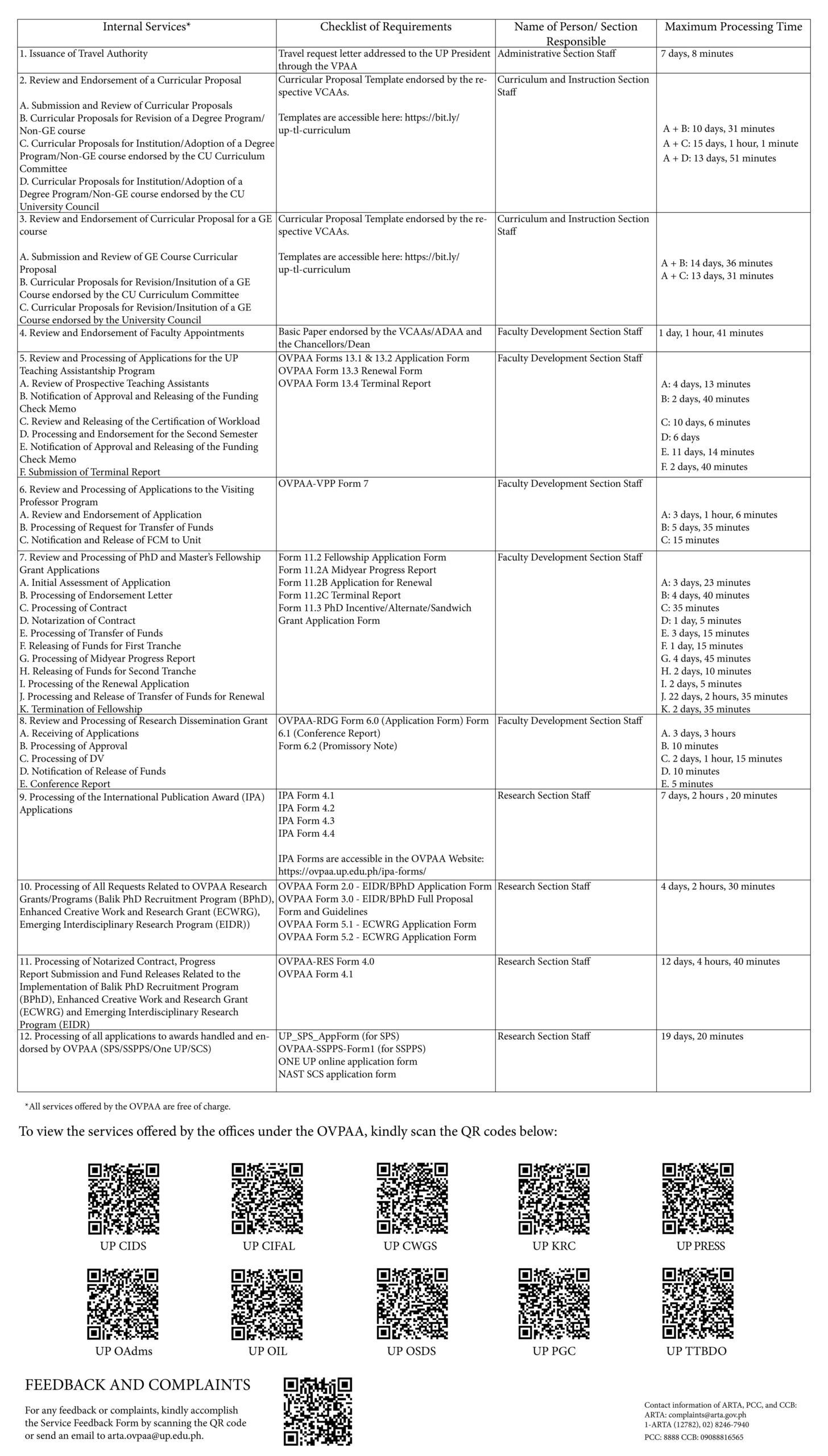 The OVPAA aims to create an enabling environment that supports development in teaching, research and public service at UP. Through its programs, policies and processes, the OVPAA seeks to help UP better align its goals and priorities with the needs of an ever-changing society.